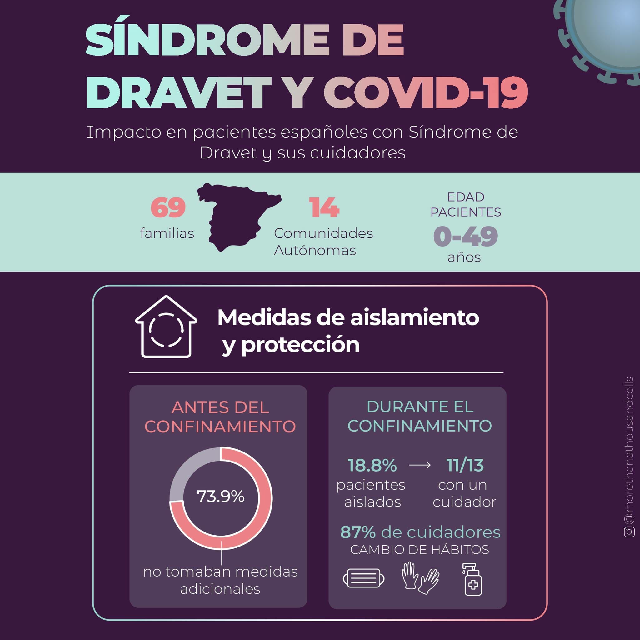 ✔️ Las familias Dravet están acostumbradas a utilizar ciertas medidas de protección para evitar las infecciones en los pacientes Dravet. Es importante que recordemos que, debido al beneficio conocido que tiene sobre la epilepsia y el comportamiento de los pacientes acudir al colegio y a actividades de trabajo y rehabilitación, y puesto que no se observó una menor frecuencia de las crisis epilépticas cuando los pacientes estuvieron permanentemente en casa, se recomienda mantener en la medida de lo posible dichas actividades en lugar de sobreproteger y aislar a las personas con Dravet.