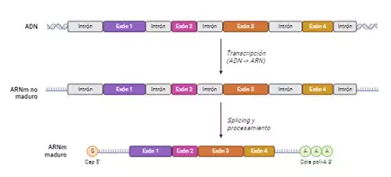 En el contexto del síndrome de Dravet, los ASO están diseñados para aumentar específicamente la expresión del transcrito productivo de SCN1A. Esto se logra modulando los eventos de empalme no productivos que ocurren naturalmente. Para entender esto, primero es interesante conocer que el ARNm no maduro cuenta con diversos fragmentos, algunos contienen información genética y otros no. Los que contienen la información para hacer una proteína se denominan exones, y son como las “instrucciones” que la célula sigue para construir una proteína. Por otro lado, los intrones se encuentran entre dos exones y no contienen información para formar una proteína, son una especie de “relleno”, y se eliminan en un proceso denominado “splicing”. Este procedimiento ocurre de forma natural para dar lugar a un ARNm en el que se han unido todos los exones y se encuentra ningún intrón. Será este ARNm maduro el que se traducirá a proteína (es decir, el que dará lugar finalmente al canal de sodio). Para que se entienda un poco mejor, es como si un gen fuese una receta para hacer una proteína: los exones son las instrucciones de ésta, mientras que los intrones son páginas en blanco que han ido quedando en medio; el proceso de splicing sería como cortar las páginas en blanco para que la célula se quede sólo con las instrucciones que necesita para formar la proteína.
